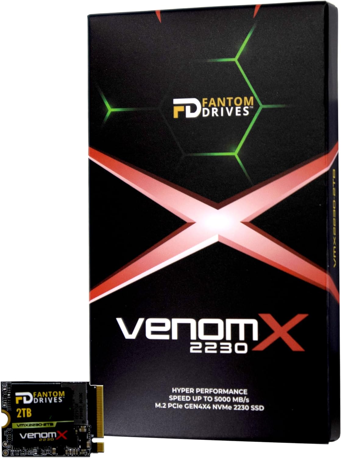 Fantom Drives VenomX PCIe 4.0 M.2 2230 NVMe SSD cutting-edge solid state drive is your gateway to uncompromising speed and capacity, designed to transform and expand your gaming and computing experience. The VenomX M.2 2230 NVMe Solid State Drive ensures you have ample space for all your games and files. Say goodbye to bottlenecks! Boasting an impressive 750K IOPS, VenomX SSD redefines responsiveness and storage excellence. Upgrade your system with confidence. Elevate your work, elevate your play – all with the reliability and innovation you can expect from state-of-the-art storage technology. Welcome to the future of storage. Welcome to the VenomX 2230 PCIe 4.0 M.2 NVMe SSD. Your data, your speed, your journey – reimagined.