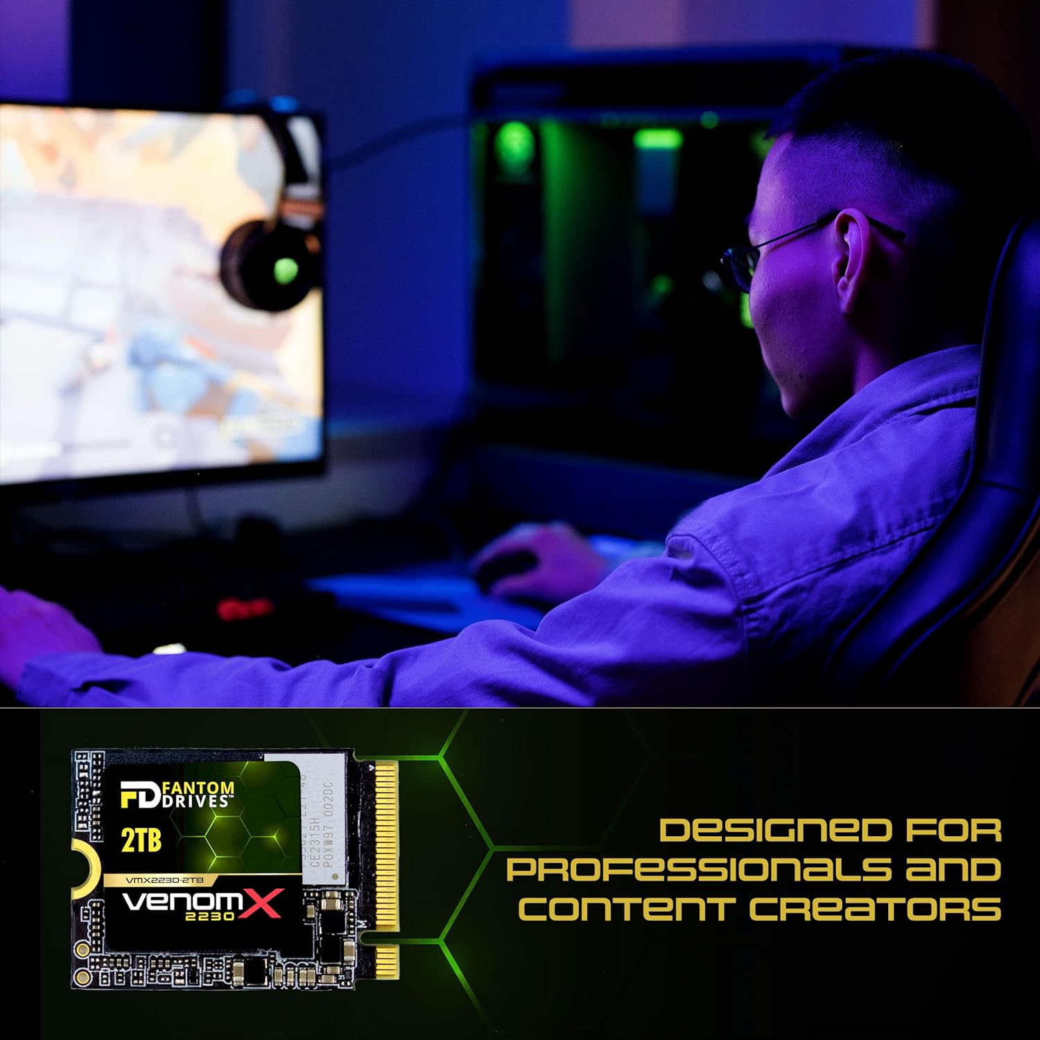 Fantom Drives VenomX 2TB M.2 2230 NVMe SSD, PCIe Gen4 x 4, Read speeds up to 5100MB/s, Internal Solid State Drive for PC and Gaming Consoles
