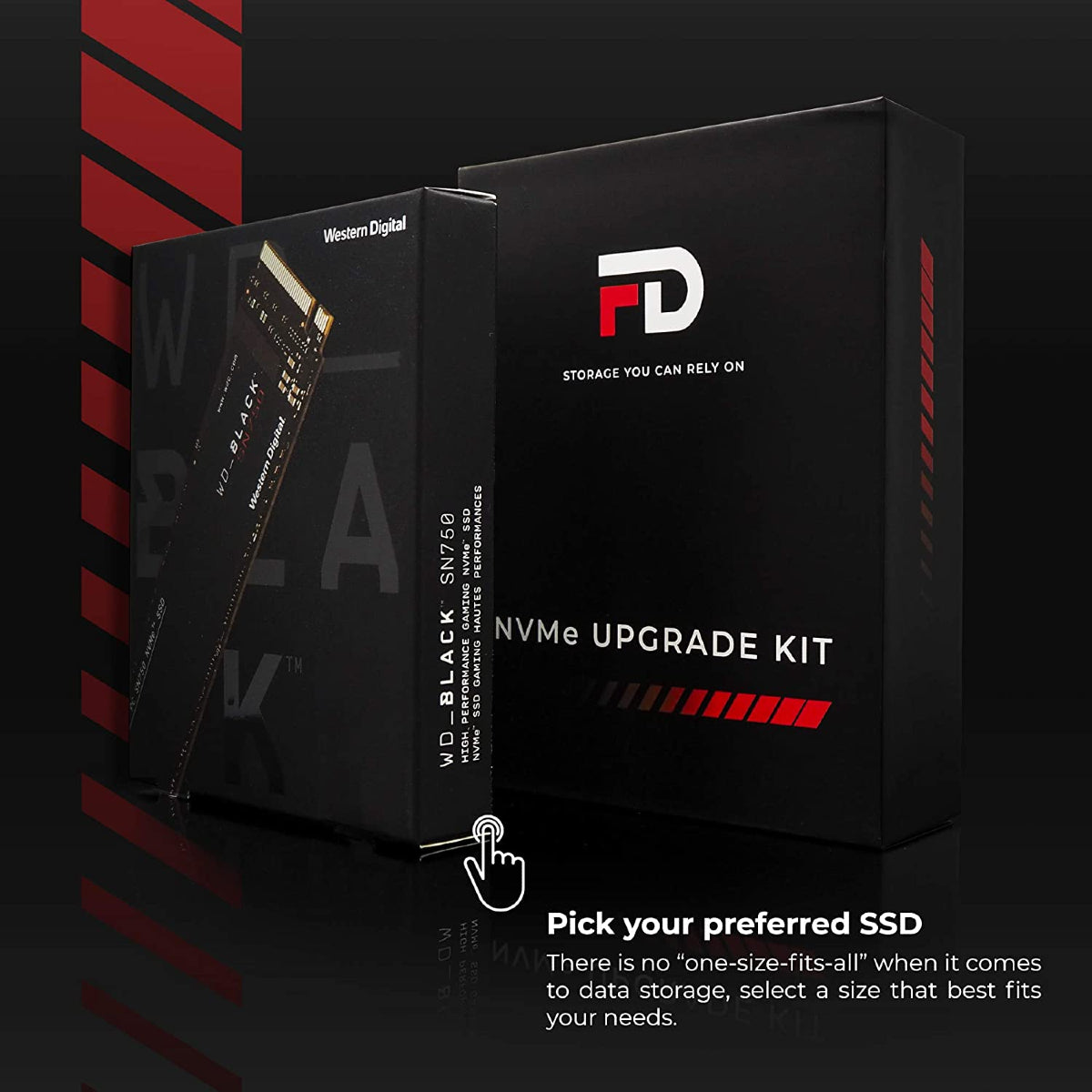 Fantom Drives NVMe M.2 Solid State Drive upgrade kit takes your PC to the next level. Install the latest WD Black NVMe SSD (SN750) to your available PCIe or M.2 slot to get an instant load on your favorite software and games. FD NVMe M.2 Upgrade Kit includes all the tools you will need to optimize and prolong the life of your new NVMe Solid State Drive. Keep it cool with included FD SSD M.2 double-sided heatsink with 2 silicone adhesives. FD NVMe PCIe converter gives you the option of using available PCIe slots if you do not have any M.2 slots on your motherboard or if all M.2 slots are used. FD USB Flash Drive is also included with FD Cloning Software for Windows inside. Using the FD Cloning Software will save you hours as you do not have to reinstall your operating system, software, or games.